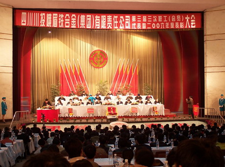 3月23日下午,川投峨铁公司在工人文化宫隆重召开了三届三次职工代表、工会会员代表暨2006年度表彰大会。来自公司各条战线上的正式代表、列席代表、特邀嘉宾共计688人出席了此次大会,大家聚集一堂,共商努力推进公司全面和谐、可持续发展大计。