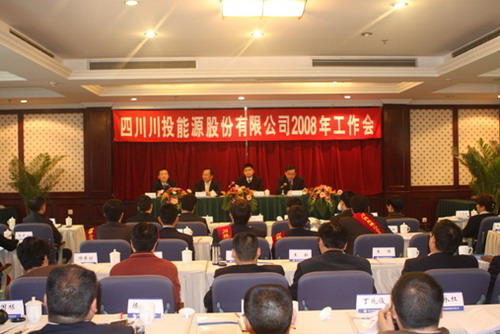 2008年4月2日,川投能源公司2008年工作会在成都龙泉天伦大酒店召开,公司全体员工、控股企业田湾河公司、嘉阳电力公司、天彭电力公司、长飞双龙公司、交大光芒公司经营班子成员、重要参股企业新光硅业公司、国电大渡河公司主要负责人、公司2007年度先进集体代表、先进个人共计60余人出席了会议。