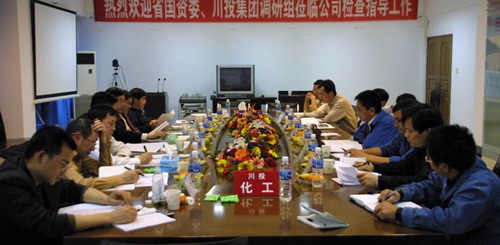 3月12日,川投集团副总经理金群率集团工业部、计划部、安办等领导一行到川投化工调研。公司领导班子成员及相关部室负责人参加了座谈会。省国资委安全处领导随行调研。