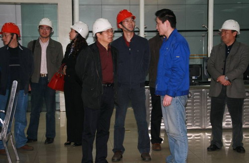 钟巡视员(前排左一)一行在公司总经理李胜章(前排中)的陪同下,参观了正在运行中的两台600MW机组,向当班值长详细了解了机组运行状况,并在现场听取了李总就公司在安全生产经营工作中的汇报。 (吴健)