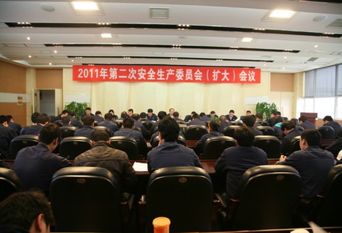 2011年4月13日上午,新光公司2011年第二次安全生产委员会(扩大)会议在2号办公楼二楼大会议室召开,公司安委会全体成员、中干、工段长、助理工段长、班组长、各部门管理人员、公司专兼职安全员等共计82人参加了会议,会议由公司总工程师刘畅主持。