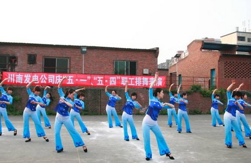 为迎接“五•一”国际劳动节和“五•四”青年节以及建党90周年,推进“创先争优”活动的深入开展。4月27日,川南发电公司在生活区篮球场举办了庆祝“五•一”国际劳动节和“五•四”青年节职工排舞表演,共有五个分工会六只代表队参加了表演。公司总经理李胜章、党委书记唐得旗等公司领导以及前来公司检查指导工作的川投集团安办主任邱煜功、能源部经理宁祖等观看了表演。