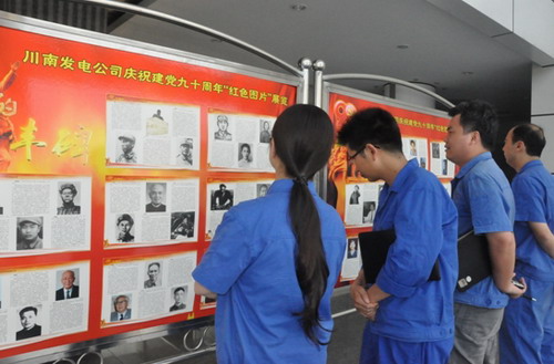 为纪念中国共产党建党90周年,川南发电公司专门订购《中国共产党历史和成就展》、《永远的丰碑》等资料图片,在公司举办“红色图片”宣传展览,生动再现中国共产党领导中国人民进行革命和建设的奋斗历程,展示在党的领导下中国革命和社会主义现代化建设的辉煌成就,进一步增强广大党员、职工建设公司、发展公司的信心和决心。(姜波)