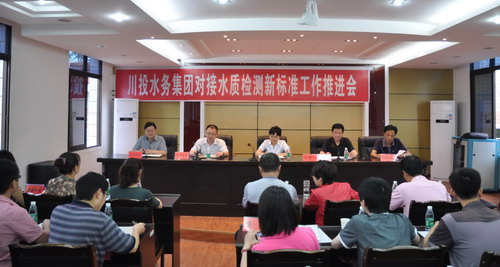 6 月17日,川投水务在射洪自来水公司召开对接水质检测新标准工作推进会,副总经理杨果、安全生产部全体员工和所属四家自来水公司化验检测工作负责人和操作人员共20 余人参加了会议。