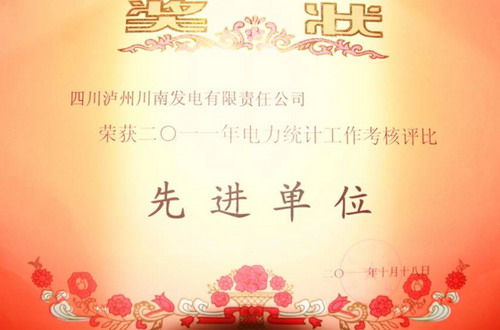 在10月20日四川省电力行业协会召开的2011年电力统计工作考核评比先进单位、先进个人的表彰大会上,川南发电公司被省电力行业协会授予“2011年电力统计工作考核评比先进单位”荣誉称号,公司计划经营部王兴高被授予“2011年电力统计工作考核评比先进个人”荣誉称号。