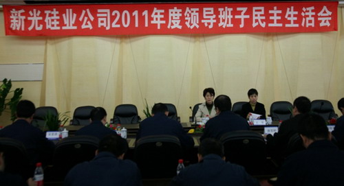 按照川投集团党委文件要求,新光硅业公司于2011年10月27日在公司2号办公楼大会议室召开了2011年度领导班子民主生活会。川投集团总会计师曹筱萍、党群工作部副主任王军到会指导。新光公司领导班子成员参加会议,技术专家、各部门负责人、党员代表列席会议。会议由党委书记、总经理陈长江主持。