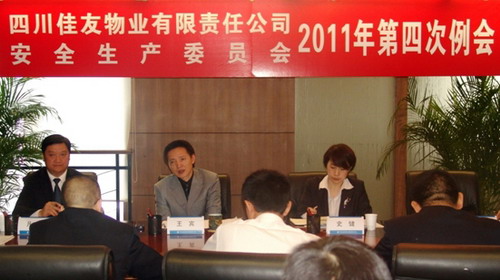 2011年11月8日,佳友物业公司安委会在川投大厦903会议室召开了2011年第四次例会,传达贯彻集团安委会2011年第四次例会精神,部署四季度安全生产工作任务。出席例会的有公司安委会主任王宾、安委会全体成员、公司本部管理人员、各项目负责人和部分项目部门副主管以上管理人员共计24人。