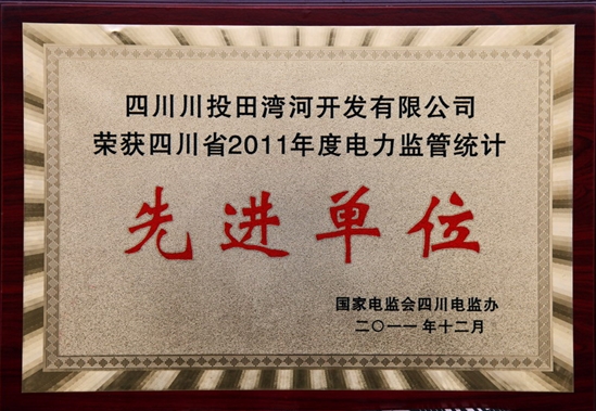 田湾河公司荣获四川省2011年度电力监管统计先进单位荣誉称号