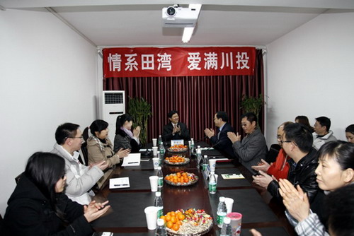 1月20日,川投集团党委副书记、纪委书记董建良,党群工作部主任金晶一行到田湾河公司成都管理基地亲切慰问公司员工。
