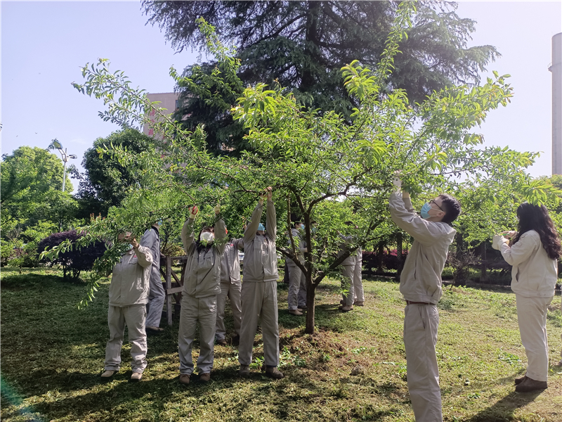 为合理利用公司厂区空地,打造绿色峨铁,从2018年开始,川投峨铁公司在厂区内陆续种植了李子树、桃子树、柑橘树、枇杷树等果树近300株。每年春季果树挂果时,对果树进行适当疏果,摘除多余的果实,帮助果实变得健壮,利于树势的生长也是公司园林绿化的一项重要工作。为抢抓时节,在公司的统一部署下,由后勤保卫中心牵头,在4月19日至20日,组织机关处室员工分包分块,在公司总厂区和二厂区开展疏果活动。在经过后勤保卫中心专业人员的简单培训,掌握了疏果技巧后,参加疏果的同志便纷纷行动起来,细心修枝清果,把长得过密和发育不好的小果进行剔除。经统计,共疏李子树36株、枇杷树近20株。