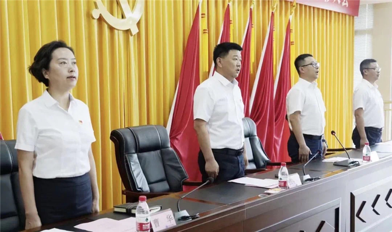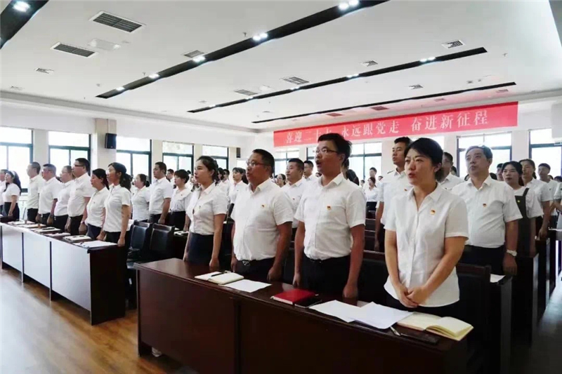 大会在雄壮的国歌声中拉开帷幕。铮铮誓言、澎湃力量,面对鲜艳的党旗,学院党委书记、理事长张中伟带领全体党员重温入党誓词:“我志愿加入中国共产党,拥护党的纲领,遵守党的章程......”铿锵有力的宣誓,表达了新时代共产党员的责任与担当,许下了对党忠诚、牢记使命的坚定承诺。