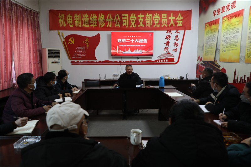 为深入学习贯彻党的二十大精神和省委第十二届二次全会精神,根据集团党委安排,12月29日下午,副总经理金大钧赴机电制造维修分公司宣讲党的二十大精神,并提出工作要求。